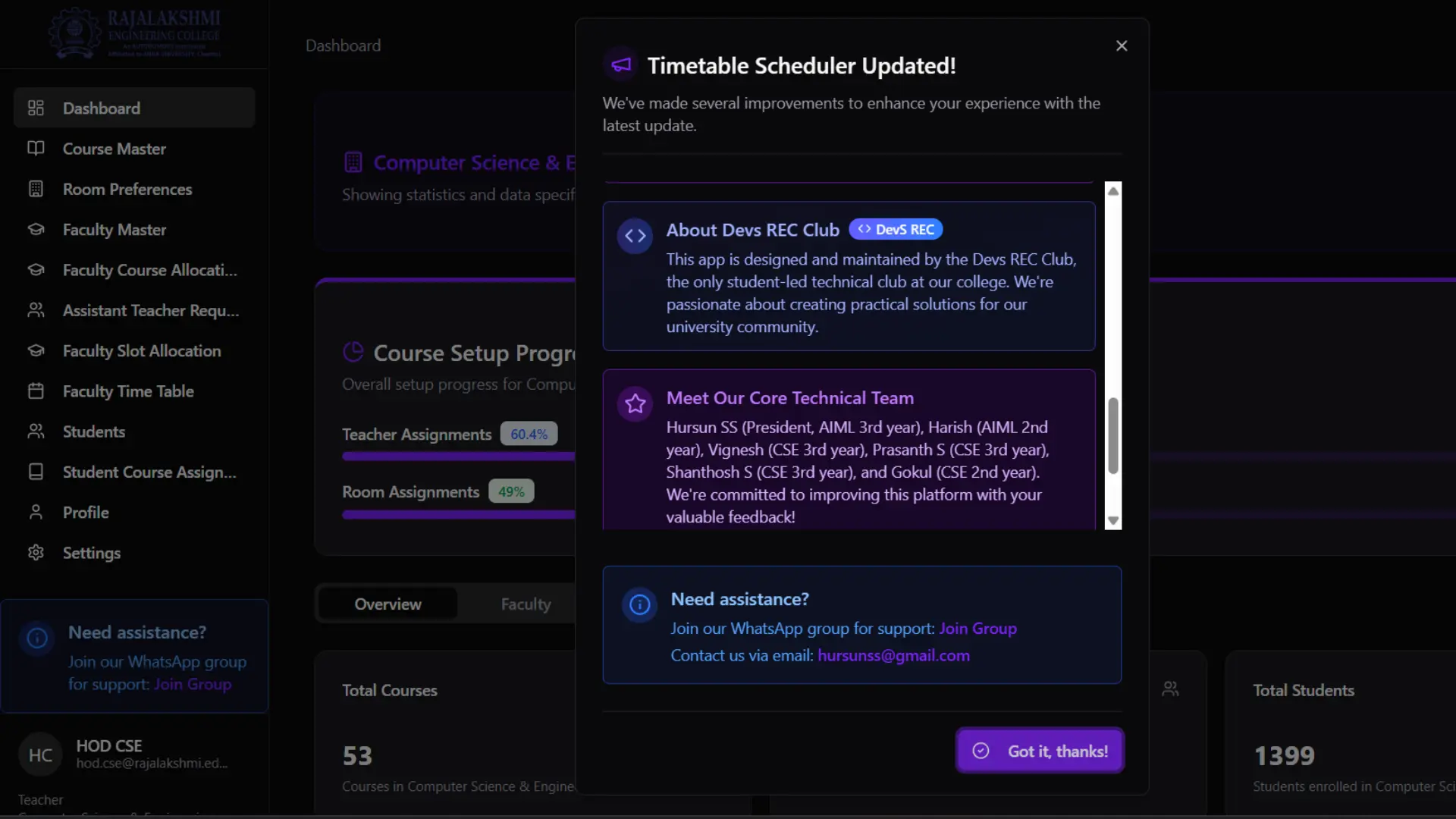 Real-time Updates: Instant notifications for schedule changes and clash alerts with automated resolution.